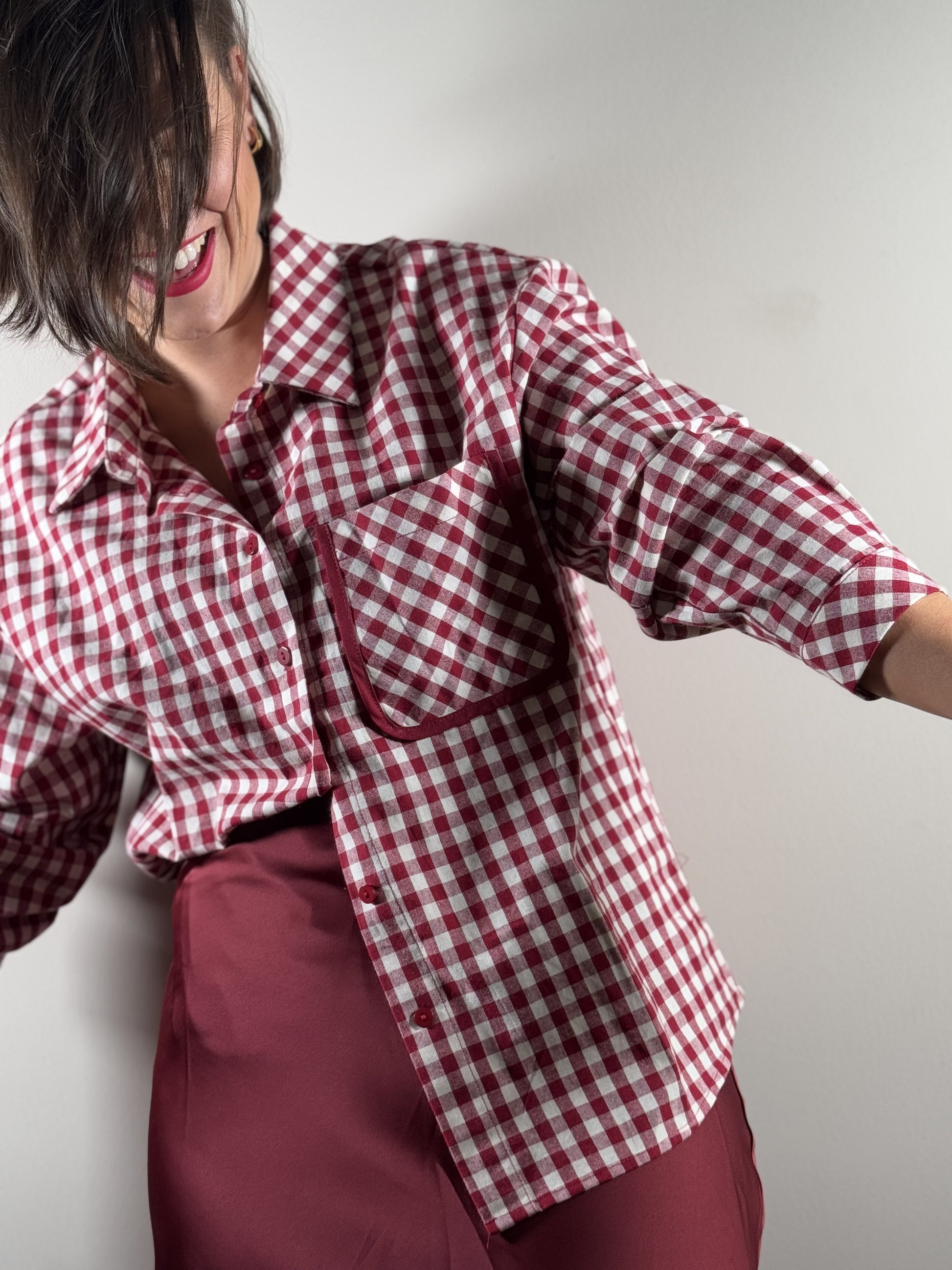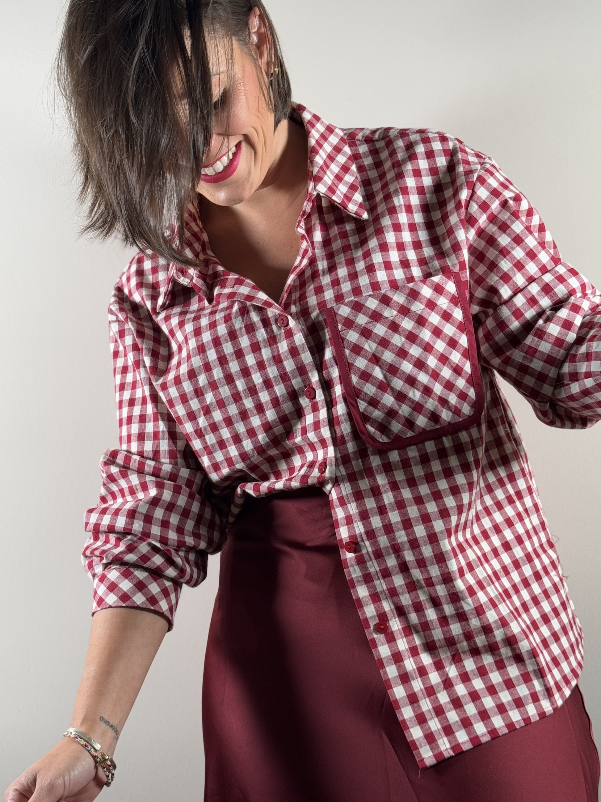 CAMISA DE CUADROS VICHY CON BOLSILLO EN UN LATERAL.